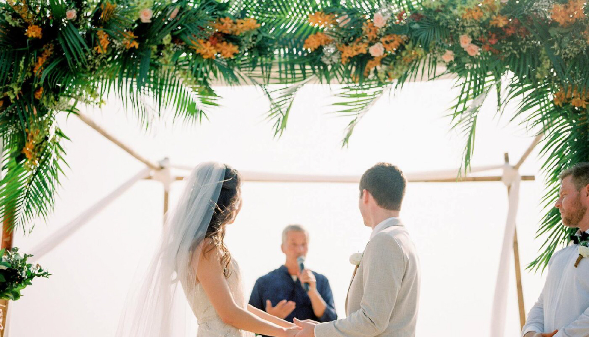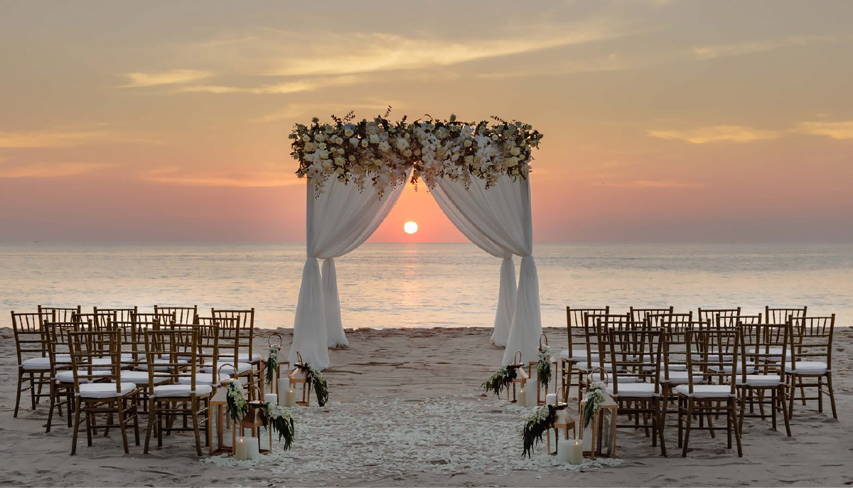 Exchange vows during a stunning sunset ceremony on the powdery white sands of Pansea Beach.