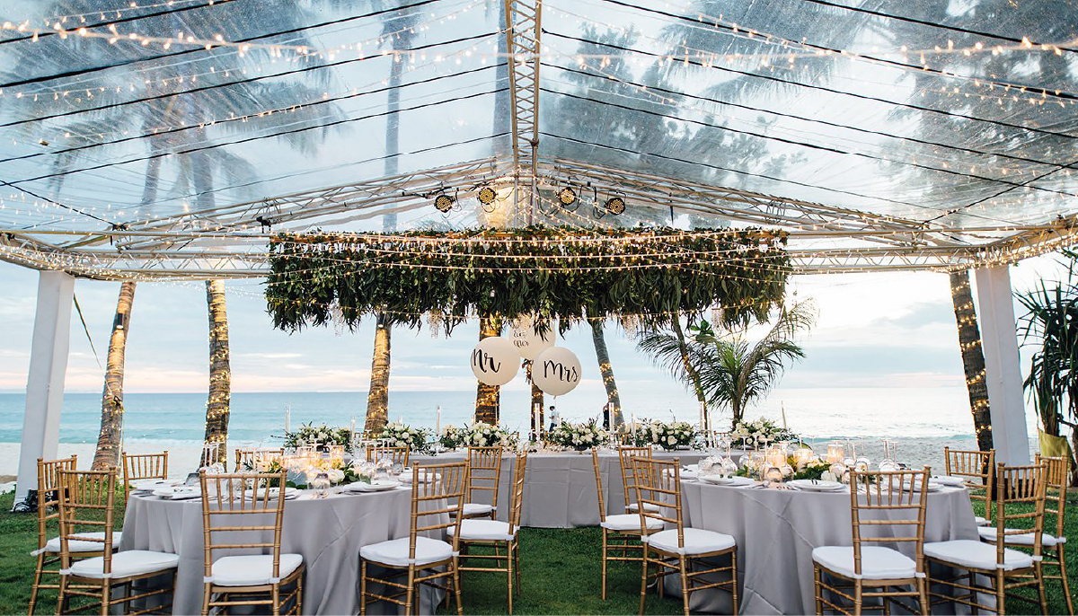 A beachfront reception on the sand amongst the surrounding tropical gardens makes for a memorable wedding reception at The Lawn.